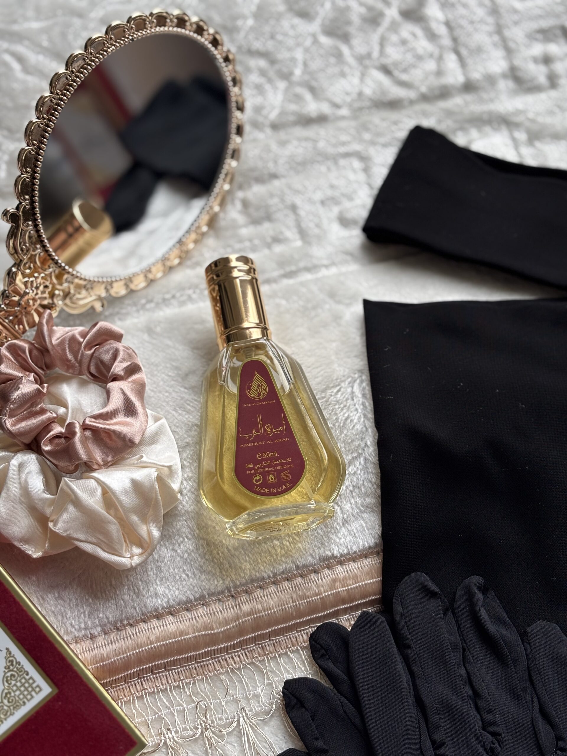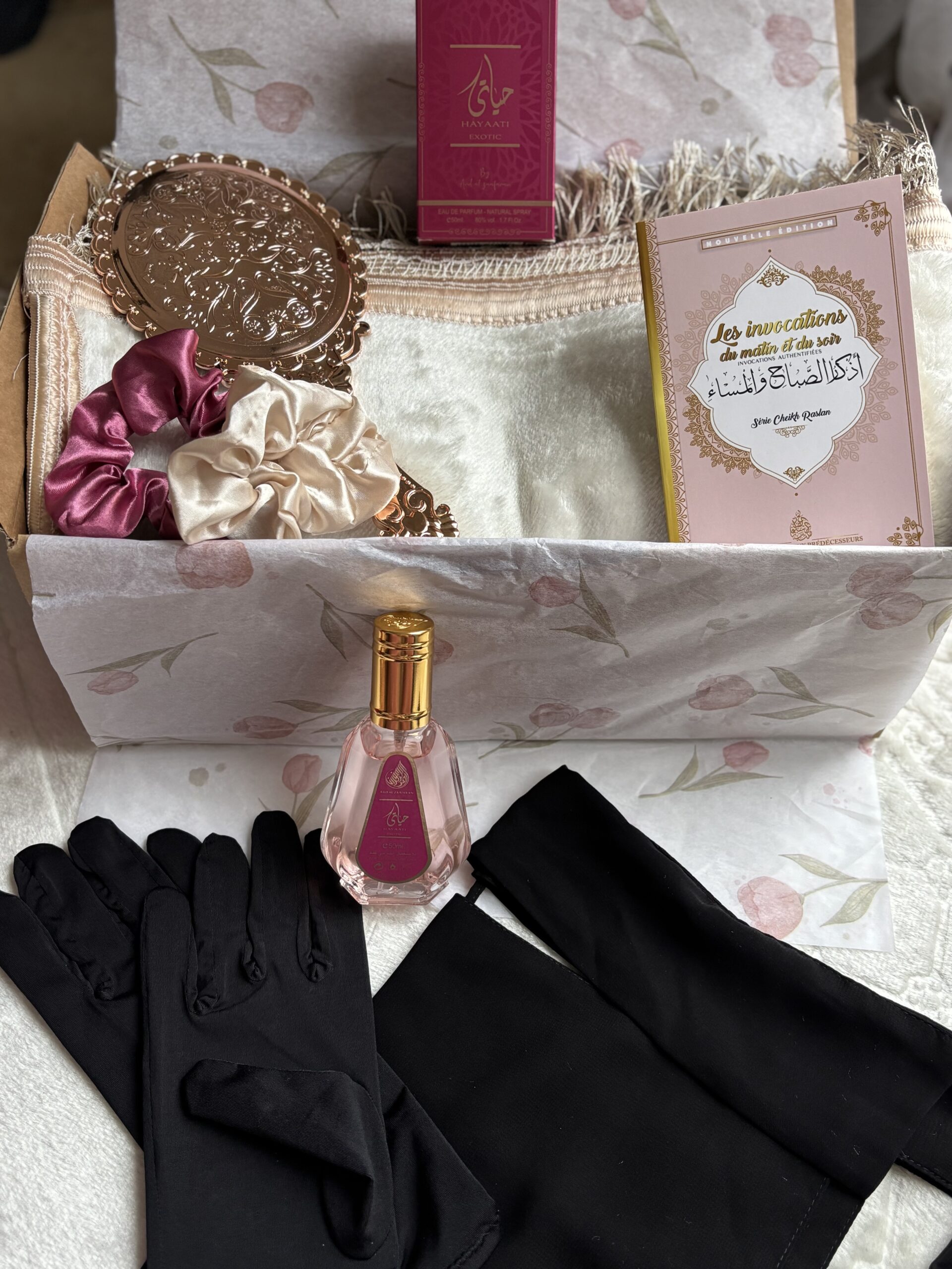 La Box Amāna est une box spirituelle et féminine pensée pour accompagner la femme musulmane dans son quotidien, avec douceur, pudeur et intention.